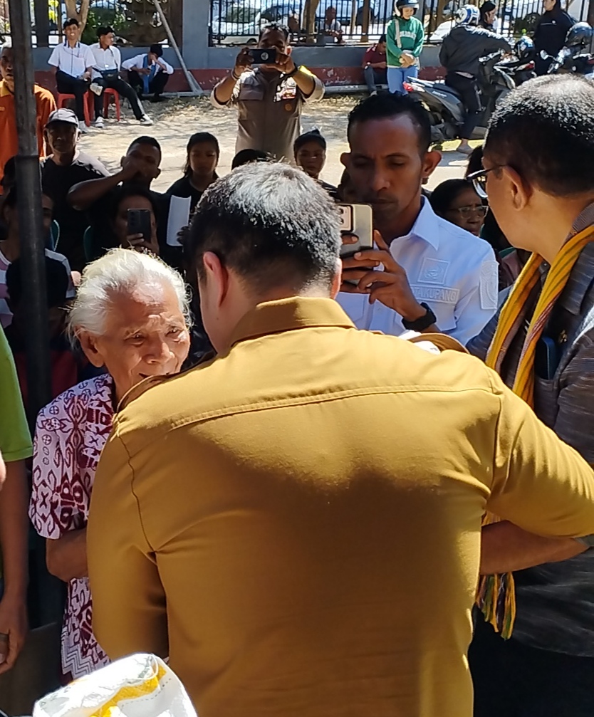 Wali Kota Kupang bagi bantuan beras secara simbolik/foto: timesntt.comKota Kupang, TIMESNTT.COM-Wali Kota Kupang membagikan beras secara simbolik kepada warga kurang mampu di Kelurahan Nefonaek dan Pasir Panjang, Selasa 15 Juli 2025.