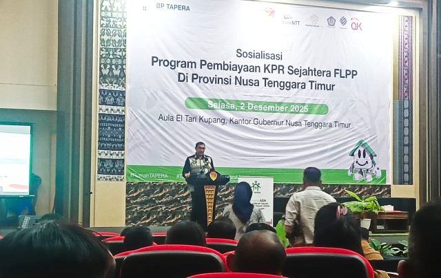 “Tahun ini target kami 300 unit rumah, dan saat ini sudah terealisasi 247 unit. Sisa 53 unit diharapkan dapat segera terealisasi sebelum akhir tahun. Program ini tidak hanya membiayai ASN sebagai pengguna, tetapi juga mendukung sisi pengembang lokal sehingga pembangunan rumah layak dapat terpenuhi,” ujar Soleman saat menyampaikan sambutan pada Sosialisasi Program Pembiayaan KPR Sejahtera FLPP di Aula El Tari Kupang, Selasa (2/12/2025).