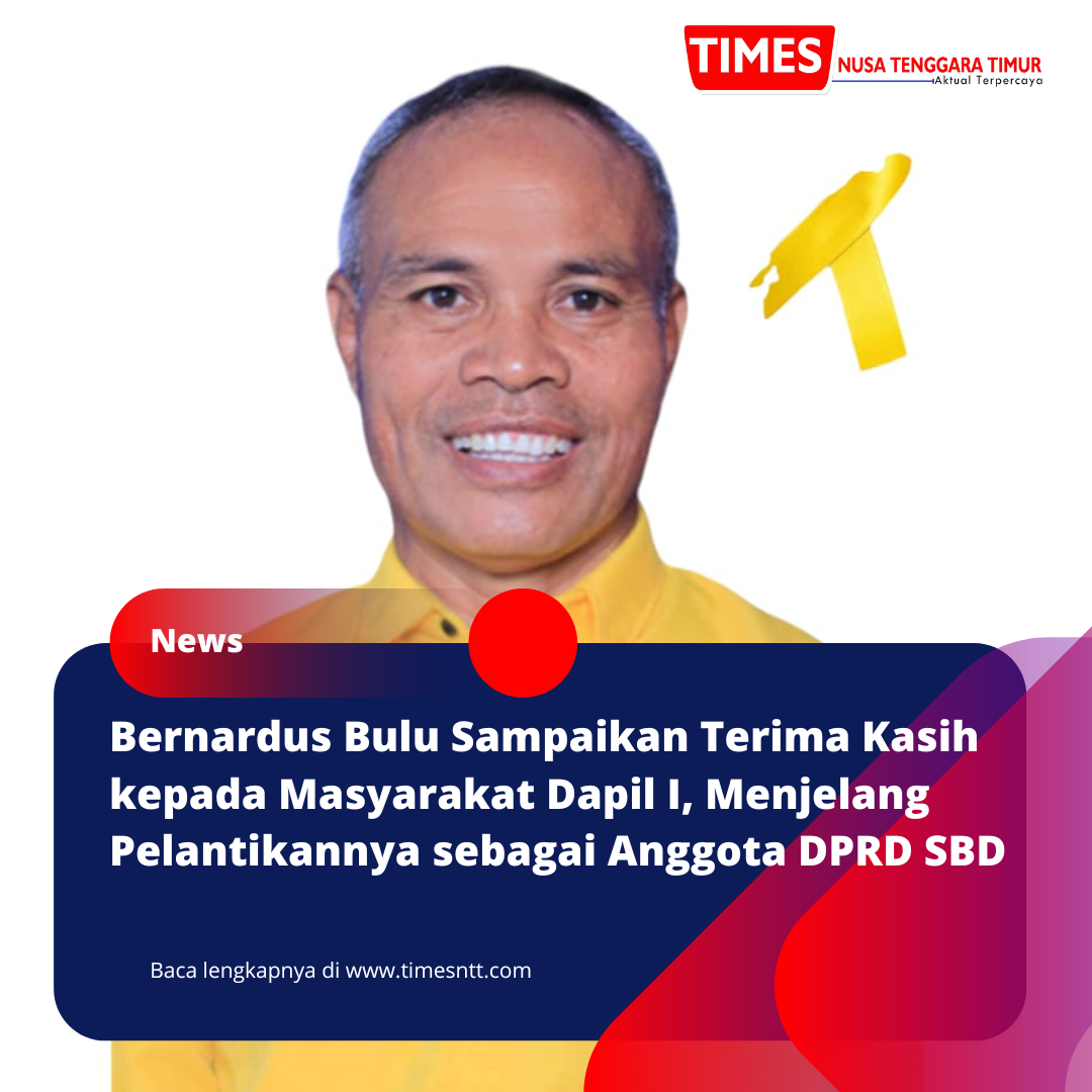 TAMBOLAKA, TIMES Nusa Tenggara Timur| Bernardus Bulu, anggota DPRD terpilih dari Partai Golkar Dapil I yang meliputi wilayah Kecamatan Kota Tambolaka dan Loura, menyampaikan ucapan terima kasih yang sebesar-besarnya kepada masyarakat yang telah mendukungnya hingga terpilih dalam Pemilu 2024. Rencananya, Bernardus akan dilantik sebagai anggota DPRD Sumba Barat Daya (SBD) besok, Senin, 09 September 2024, di kantor DPRD SBD.