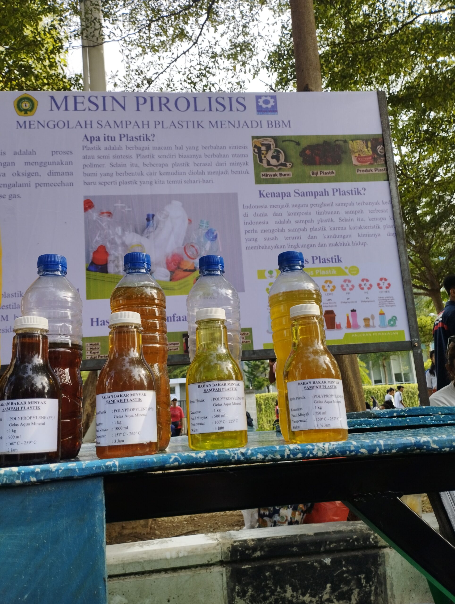 BBM yang diolah dari sampah plastik/foto:TIMESNTT.COMKota Kupang, TIMESNTT.COM-Program Studi Teknik Mesin dari Universitas Nusa Cendana Kupang (Undana) memamerkan hasil Bahan Bakar Minyak (BBM) di area Car Free Day (CFD), Sabtu 21 Juni 2025 pagi.