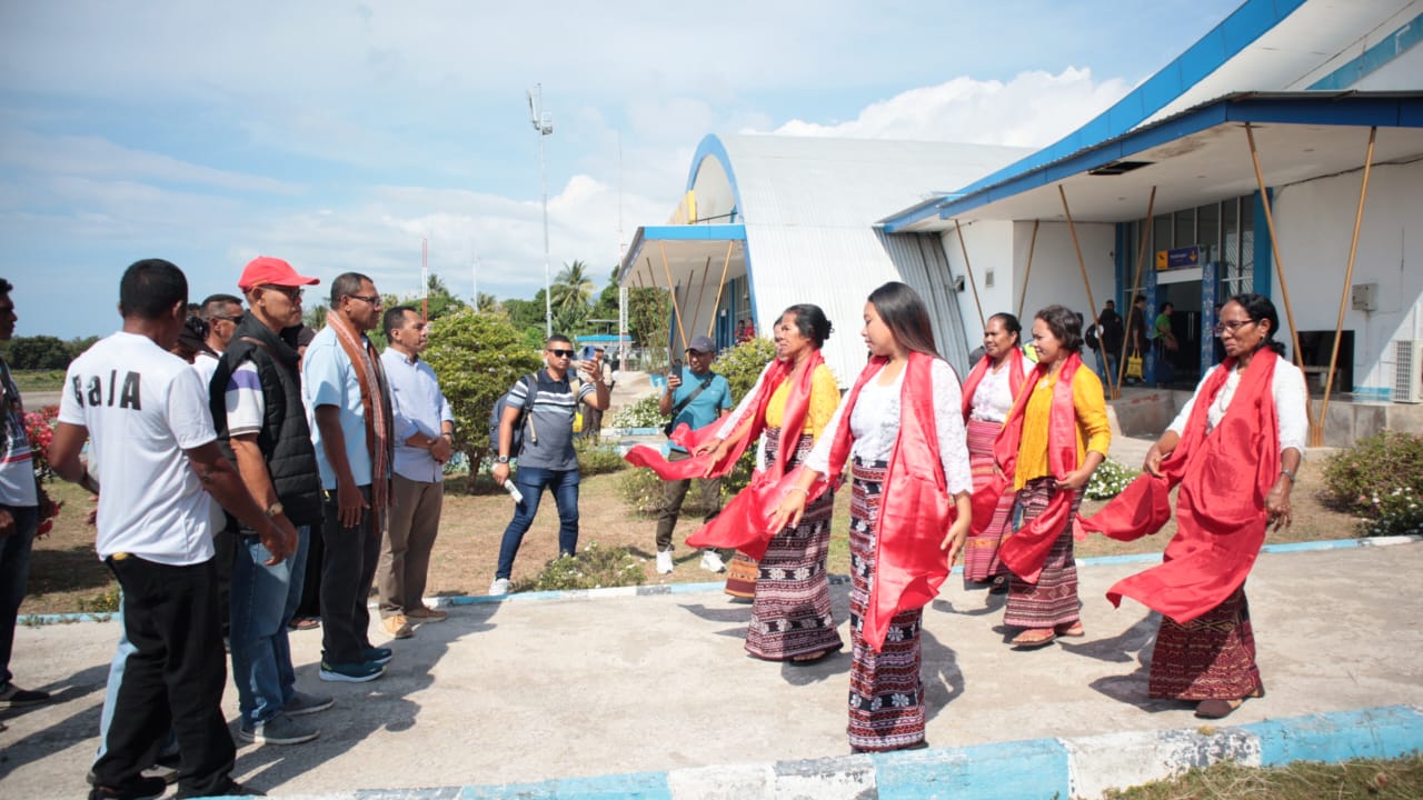 Di bandara, Johni dijemput oleh Ketua DPD II Partai Golkar Flores Timur, Yosep Sani Betan, relawan dan tim keluarga dan dikalungi selendang, serta tarian Hedung yang melambangkan persiapan raja untuk siap bertarung atau bertempur.