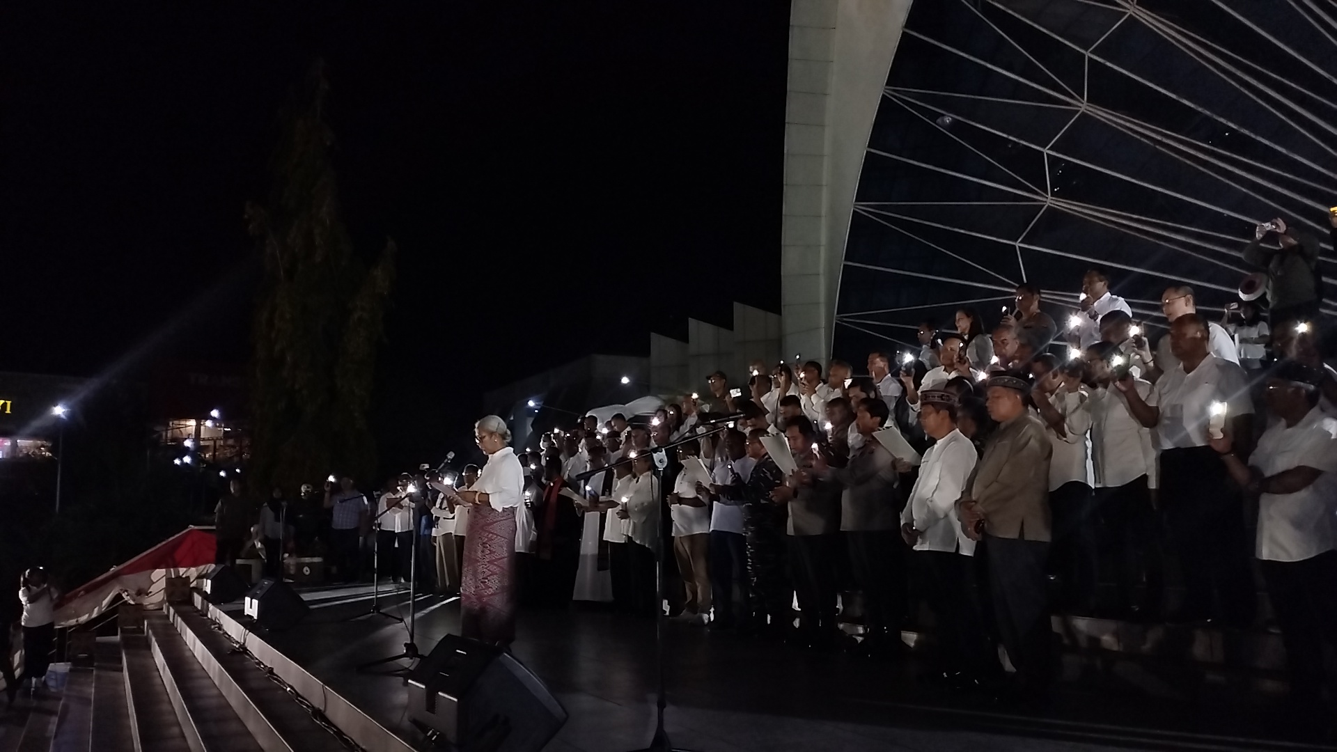 Ketua DPRD NTT, Emilia J. Nomleni pimpin deklarasi damai/foto:Timesntt.comKupang, Timesntt.com-Ketua Dewan Perwakilan Rakyat Daerah (DPRD) Provinsi Nusa Tenggara Timur (NTT) Emilia J. Nomleni membacakan teks deklarasi damai di halaman Kantor Gubernur NTT, Minggu 31 Agustus 2025 malam.
