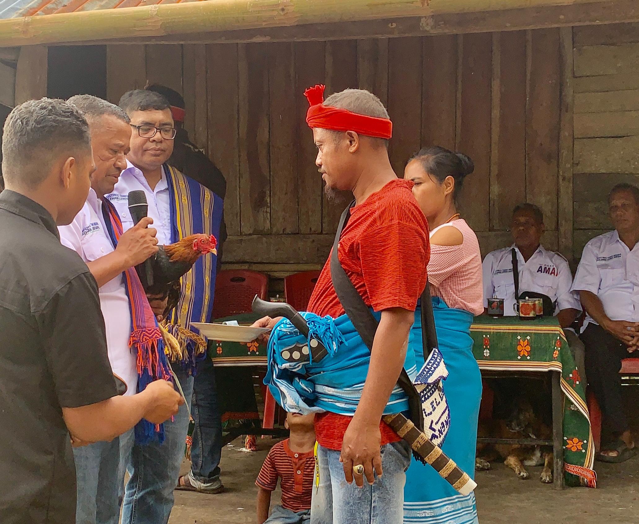 Di desa-desa tersebut, Paket AMAN disambut gembira oleh masyarakat dengan ritual adat berupa penyelempangan kain dan penyerahan ayam jantan.