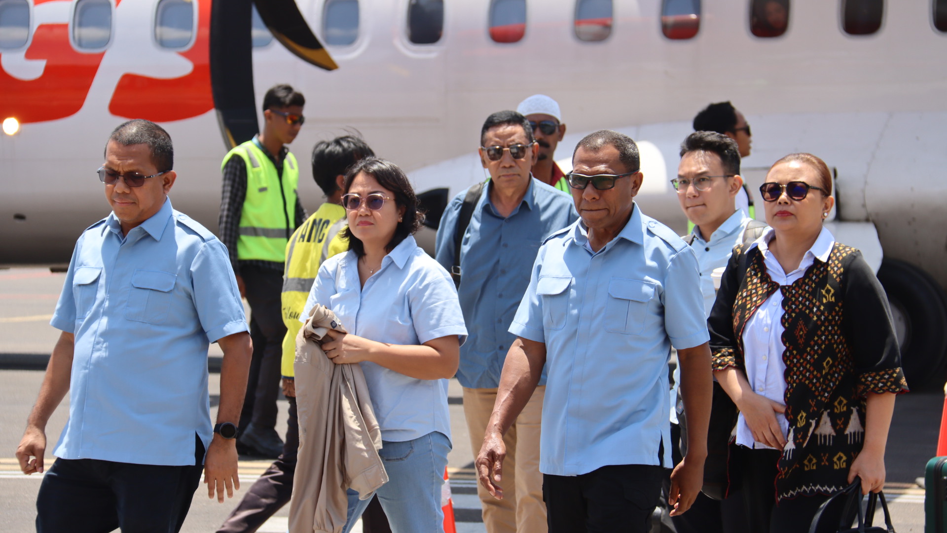 Sebagai bagian dari penyambutan, Melki Laka Lena dan Jhoni Asadoma mengenakan busana tradisional khas Sumba, sebuah simbol kehormatan dan penerimaan dalam budaya setempat.