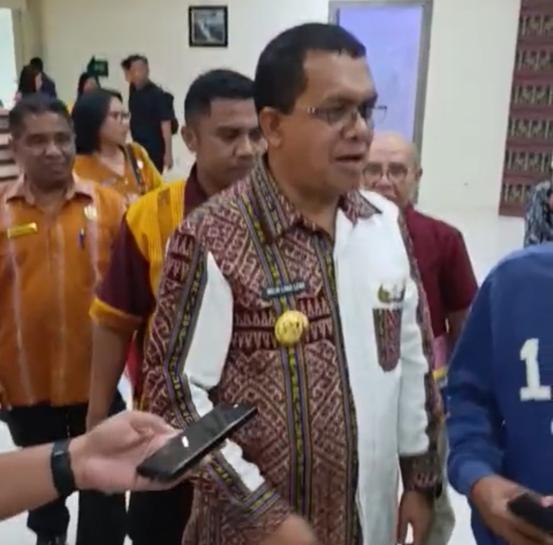 Gubernur NTT, Melki Laka Lena saat memberikan  keterangan terkait RUPS PT Flobamor/TIMESKupang, TIMESNTT.COM-Rapat Umum Pemegang Saham (RUPS) Badan Usaha Milik Daerah (BUMD) PT. Flobamor yang seharusnya dijadwalkan Kamis 22 Mei 2025, ditunda.