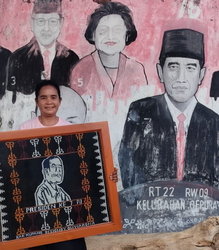 KUPANG, TIMES Nusa Tenggara Timur| Ibu-ibu di Kupang menenun wajah Presiden Joko Widodo memakai motif tenun lokal.
