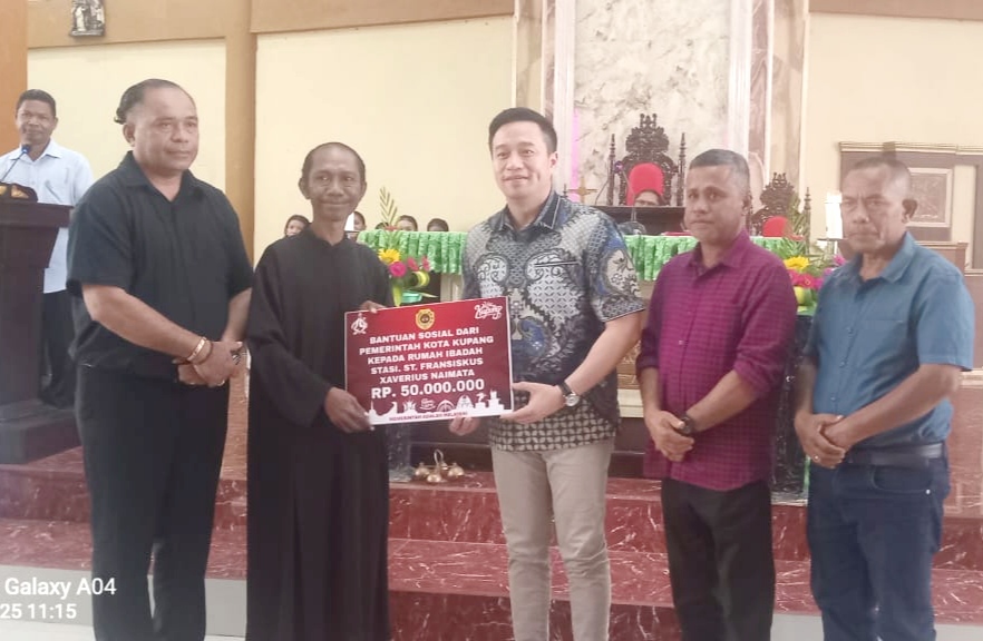 Wali Kota didampingi Kepala Bagian Kesejahteraan Sosial (Kesra) Setda Kota Kupang dan menyerahkan bantuan sebesar Rp 50 juta untuk mendukung kegiatan pelayanan umat di stasi tersebut.